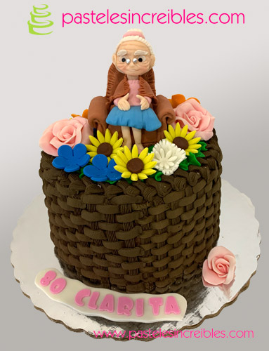 - Pastel de Fondant de Abuelita con Flores.