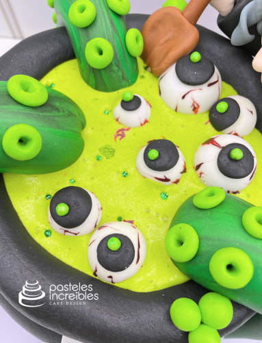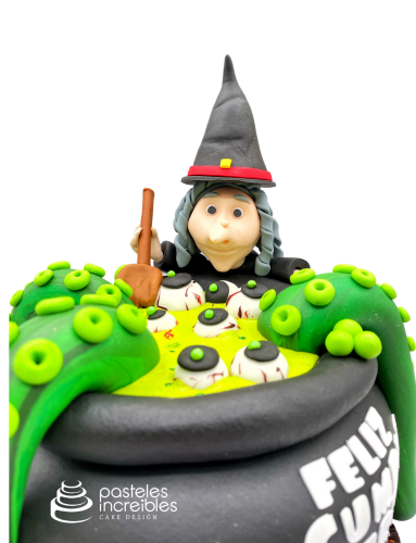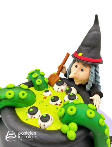 - Pastel de Fondant de Bruja con Caldero.