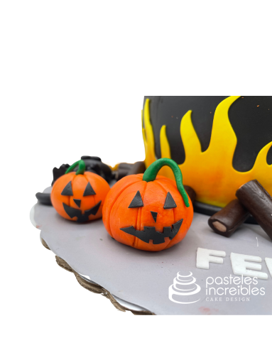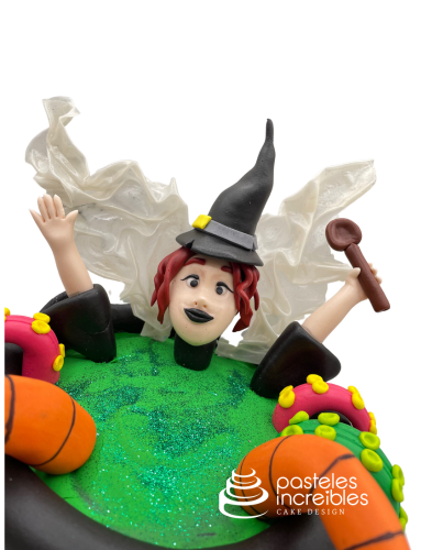 - Pastel de Fondant de Halloween de Bruja en Caldero.