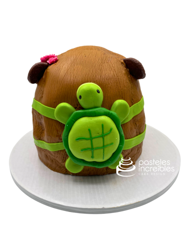- Pastel de Fondant de Capibara en 3D con mochilita de tortuga.