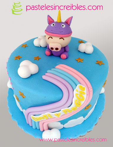- Pastel de Fondant de Cochinito disfrazado de Unicornio.