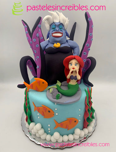 - Pastel de Fondant de La Sirenita y Úrsula.