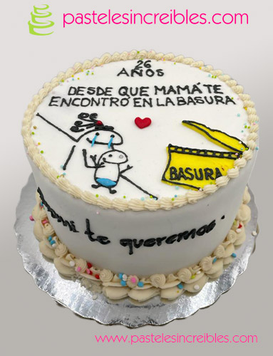 - Pastel de Fondant de Meme de Flork “X años desde que mamá te encontró en la basura”.