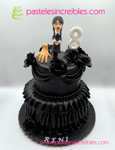 - Pastel de Fondant de Merlina de los Locos Adams y Dedos.